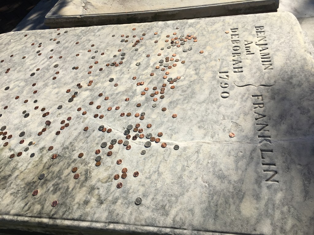 - We then went on a walking Independence Tour at noon. This tour started at the welcome center and was about 75 minutes. During the tour we heard about the history of the city and passed by the Christ Church Burial Ground where we spotted Ben Franklin’s grave.