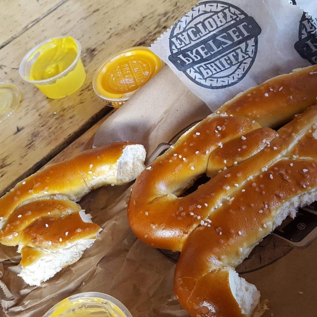 - Philly Pretzel Factory serves soft pretzels from little storefronts throughout the city. Something I learned prior to our visit was that these are not shaped in your typical pretzel shape, they are shaped as “8s”.
